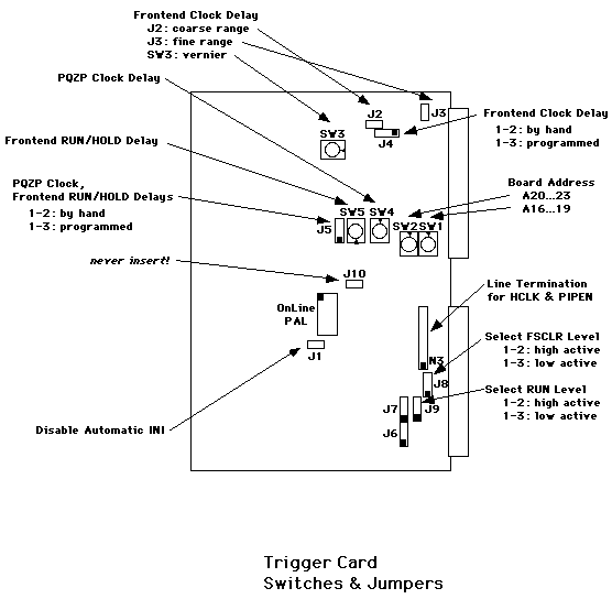 Jumpers and switches of the TriggerCard (first version!):
